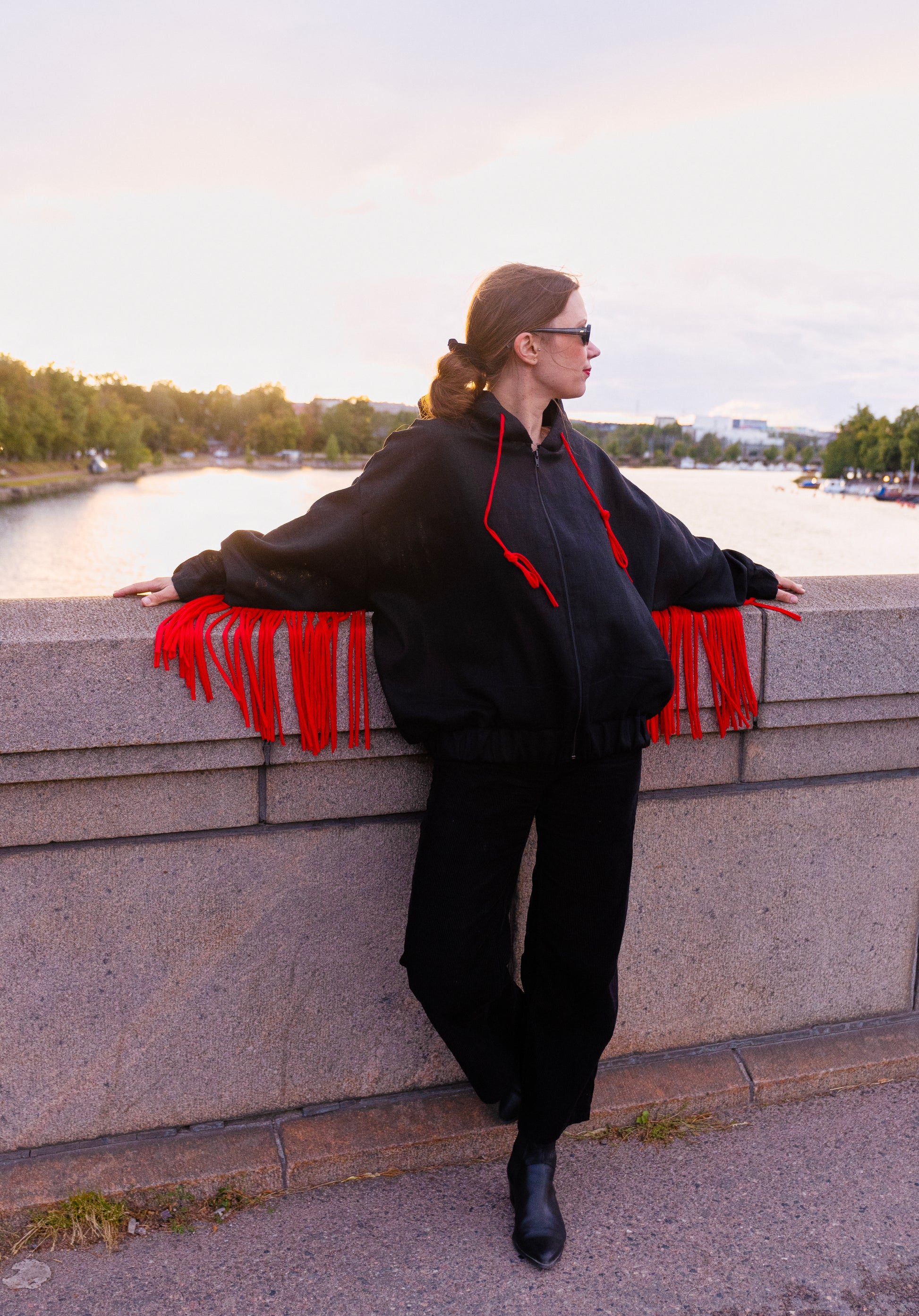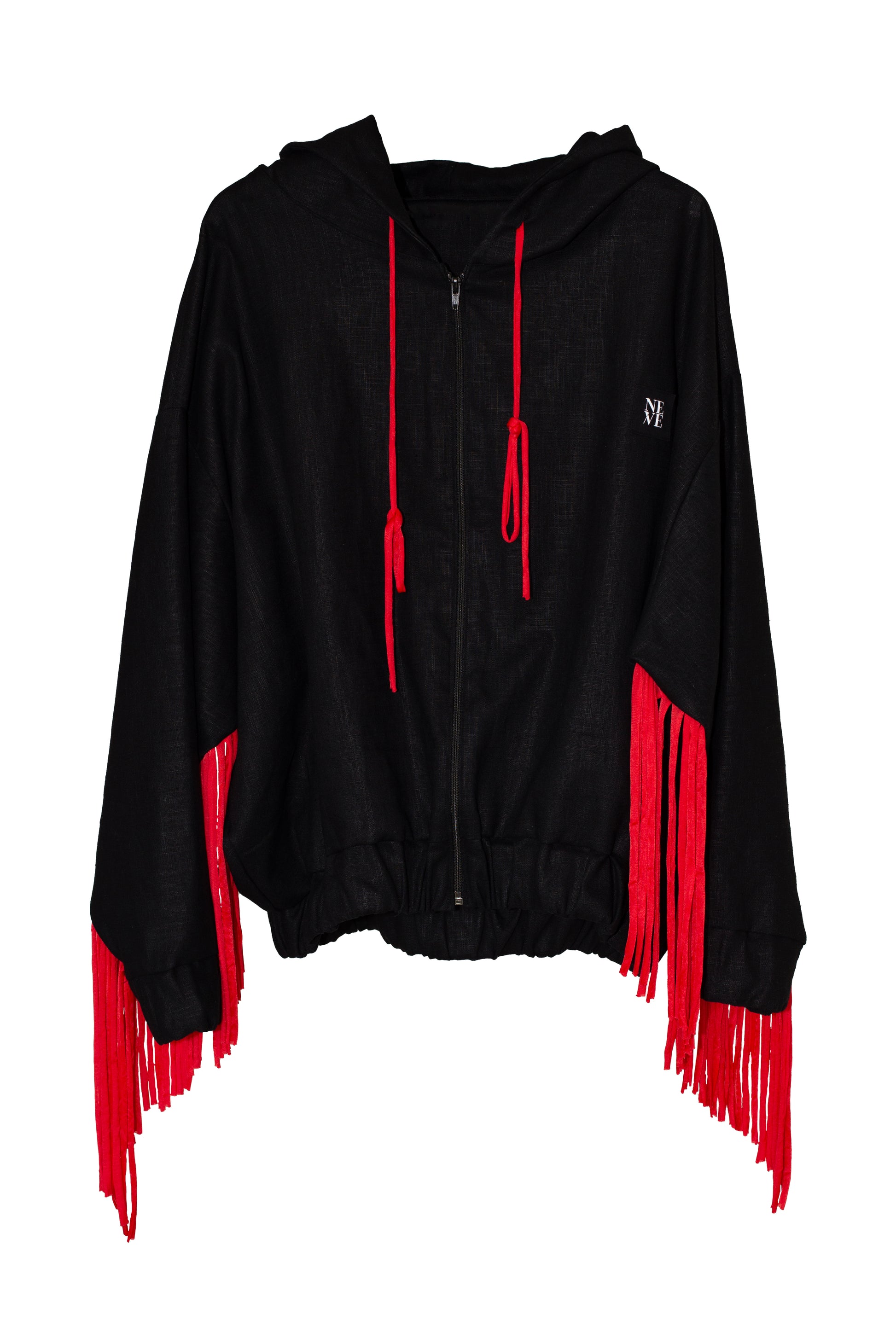 Musta pohja toimii näyttävänä taustana pitkille hapsuille, jotka liikkuvat rytmikkäästi jokaisella askeleellasi. Hapsujen eri värit antavat jokaiselle Riot -hupparille oman luonteensa – voit valita juuri sinulle sopivan version. Edessä kulkeva vetoketju tuo käytännöllisyyttä.